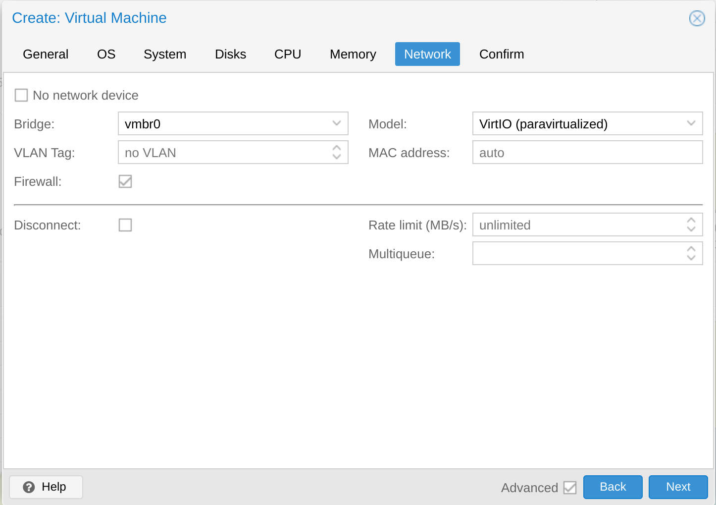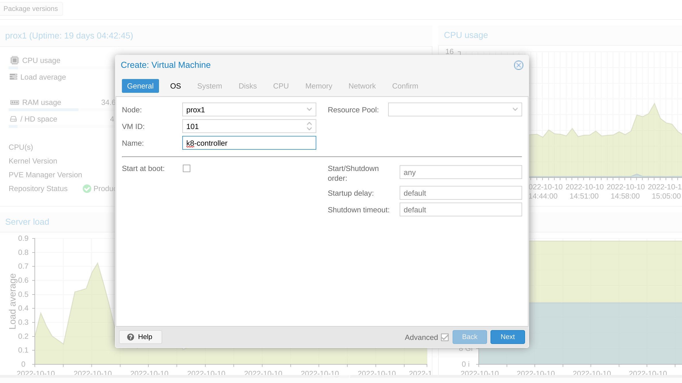 Then we can create a new VM, named k8-controller and start with the VM configuration