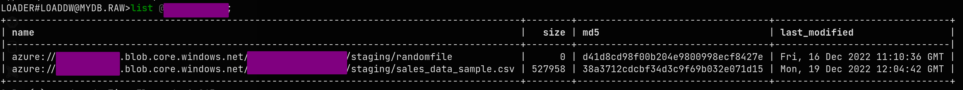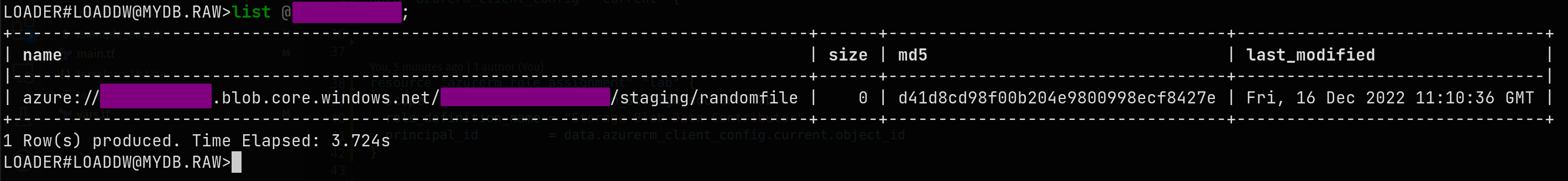 Now with Snowsql (or in a Snowflake worksheet) you can see that the file is there