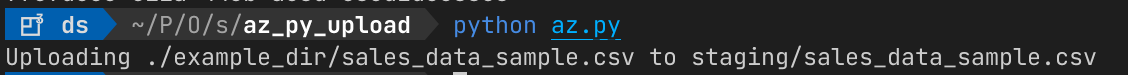 pythonaz = Az(account_url="https://your_storage_account.blob.core.windows.net",container_name="your_storage_container")az.upload_dir("./example_dir", "staging")